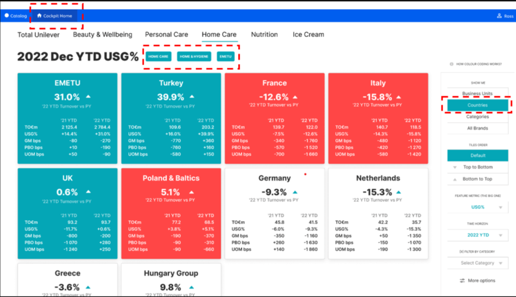 As demonstrated, Camila successfully narrows down the issue from ‘Home Care’ to ‘Home & Hygiene,’ then further to ‘EMETU,’ and finally to the specific countries where the problem persists.